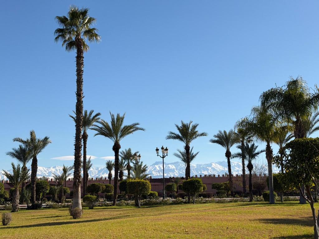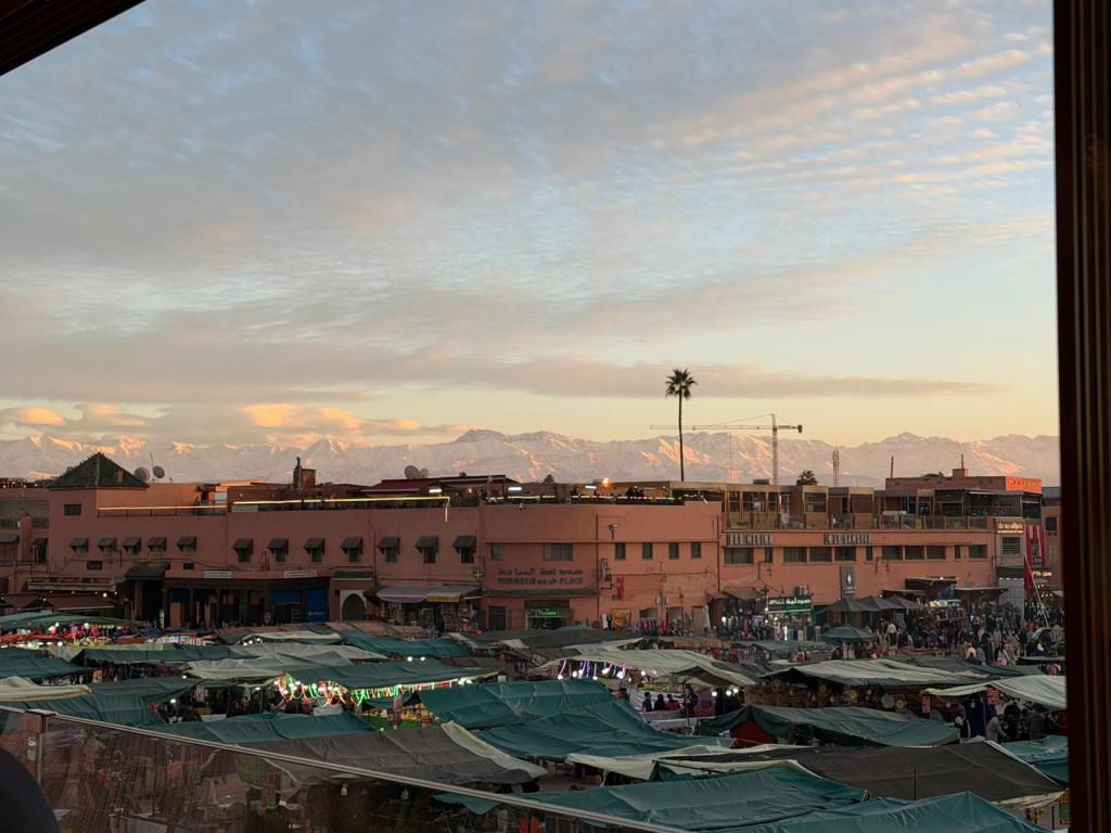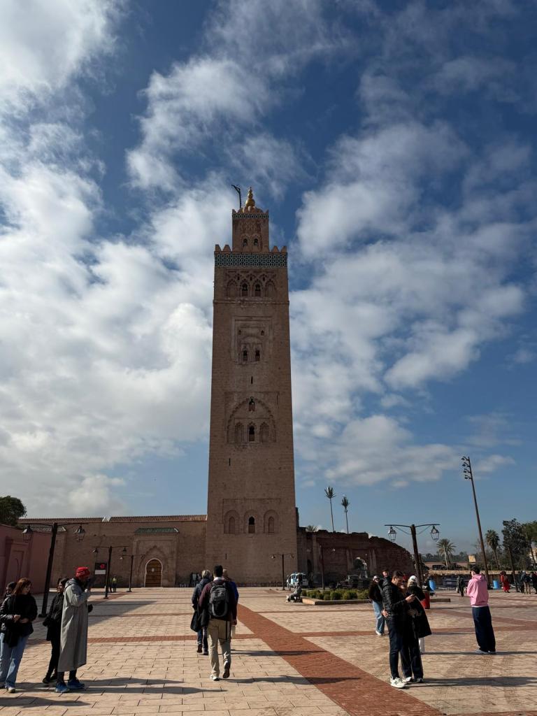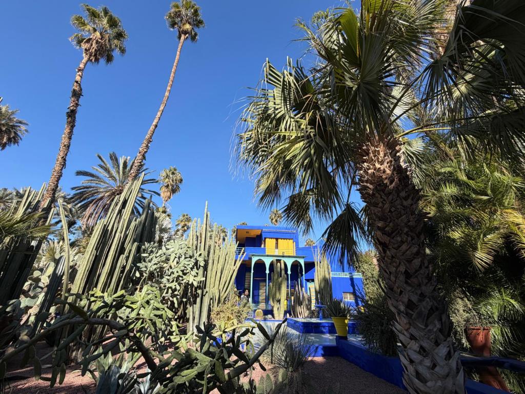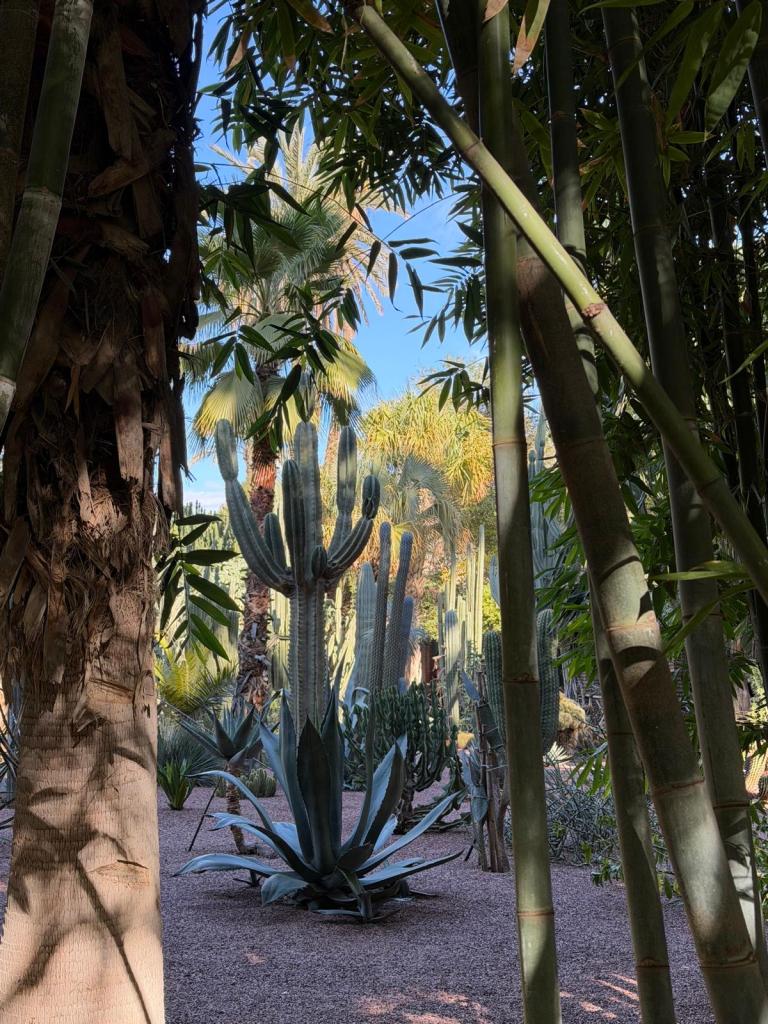 The next morning we visited the Majorelle Garden, the cactus, cake and coffee being particularly impressive. This seems an appropriate point to mention that the food on the trip was very good. Along with large buffet breakfasts at the riad we enjoyed traditional Moroccan tagines and couscous along with more traditional English fare such as chicken burgers and ice cream. The two main restaurants we went to were L’Addresse and the Argana both of which gave great views of the square and the Atlas Mountains.
