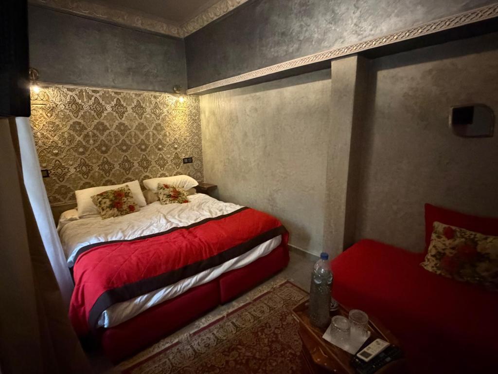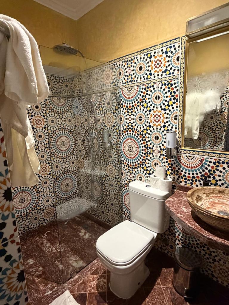 The owners could not have been more welcoming and gave us Moroccan tea and biscuits while we filled in the requisite paperwork. The photographs below show by the riads reception area firstly and then the room we were given. Perfect.